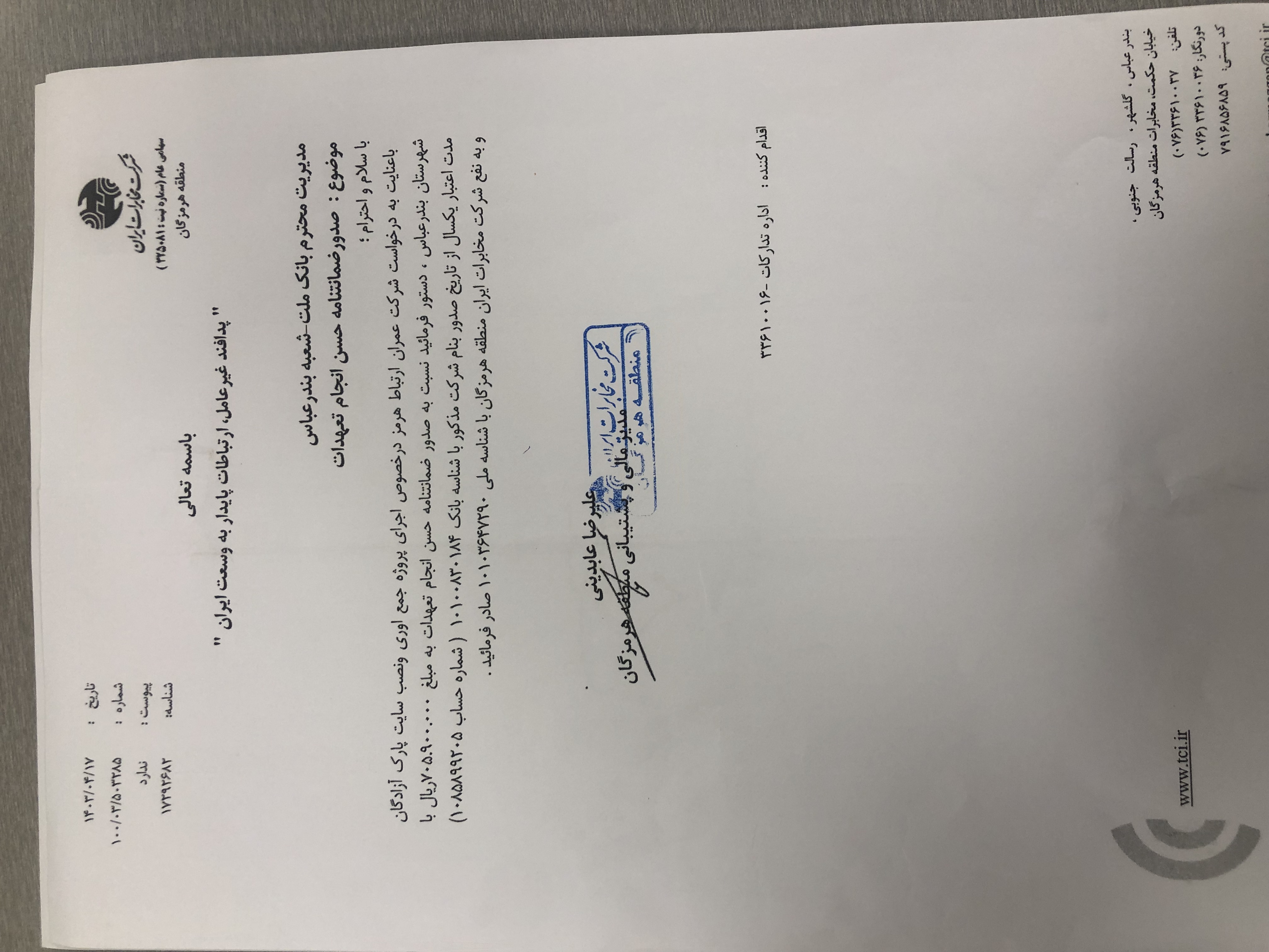 | 3 | پیگیری و مجوز ها و حمل تجهیزات | ۱۴۰۳/۰۴/۱۷ | ۱۴۰۳/۰۵/۳۰ | - |