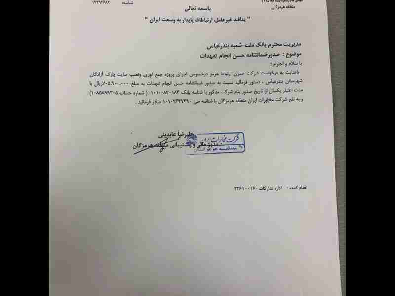 | 5 | صدور ضمانت نامه | ۱۴۰۳/۰۴/۱۹ | ۱۴۰۳/۰۴/۲۵ | ۱۴۰۳/۰۴/۲۱ |