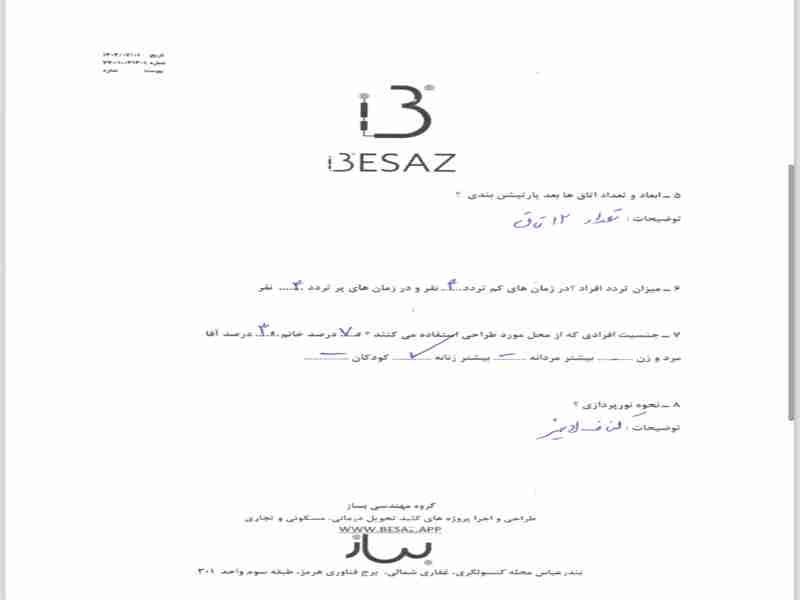 | 1 | بازدید و طراحی | 75.0 | 0 | 37.5 |