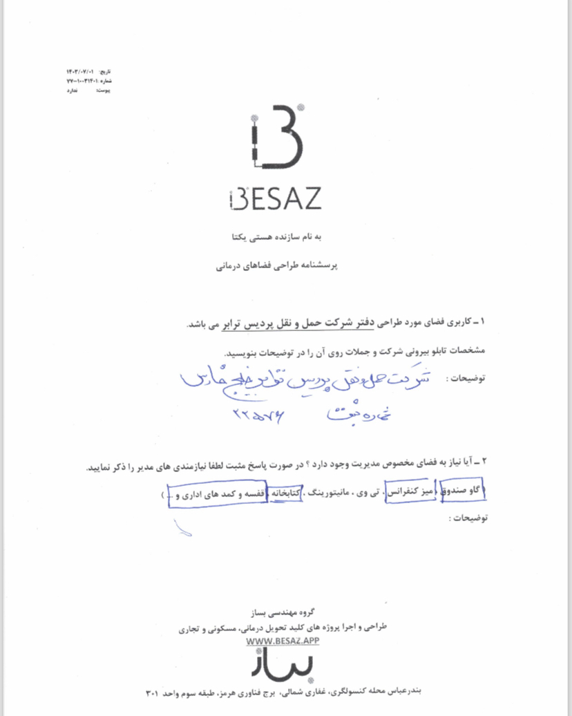 | نام پروژه | شرکت حمل و نقل پردیس ترابر |